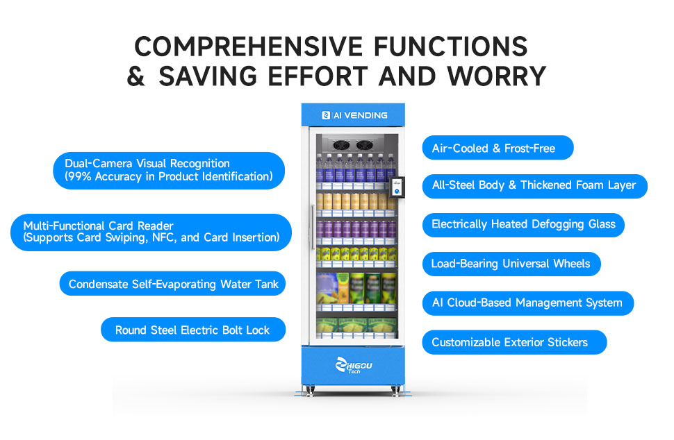 more+ZHIGOU technology brand was founded in 2017, set vending machine R&D/production/sales in one of the enterprises, to provide intelligent automatic sales solutions for various fields, products are widely used in schools, high-speed rail, airports, stations, shopping malls, hospitals and enterprises and other places. The categories of self-service sales cover food, beverages, stationery, books, toys, clothing, medicines and family planning supplies, lunch boxes, fresh juice and other fields, and the realization of cash, sca···