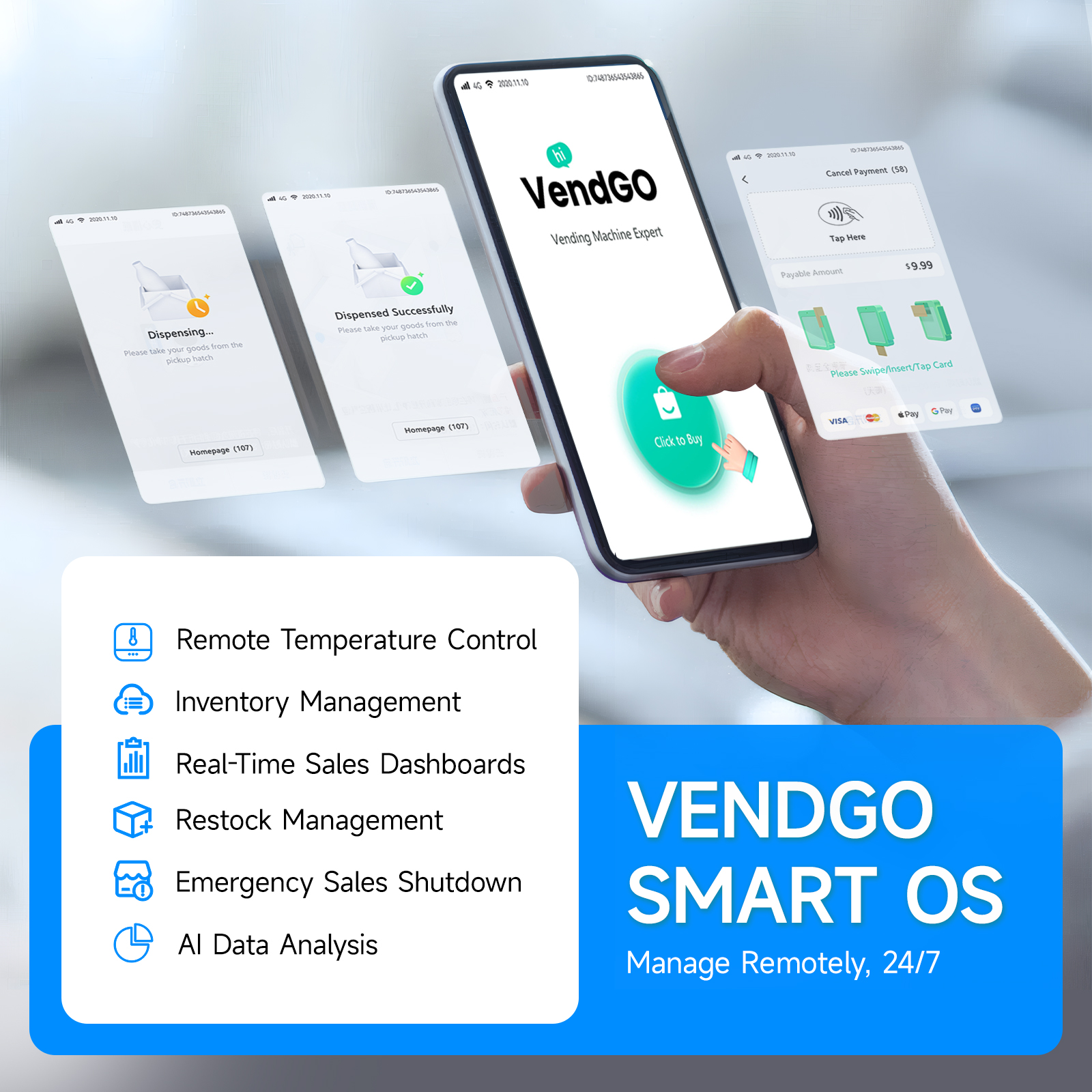 Advanced technologyIntelligent vending machines support remote management and multiple payment methods, improving efficiency and user experience